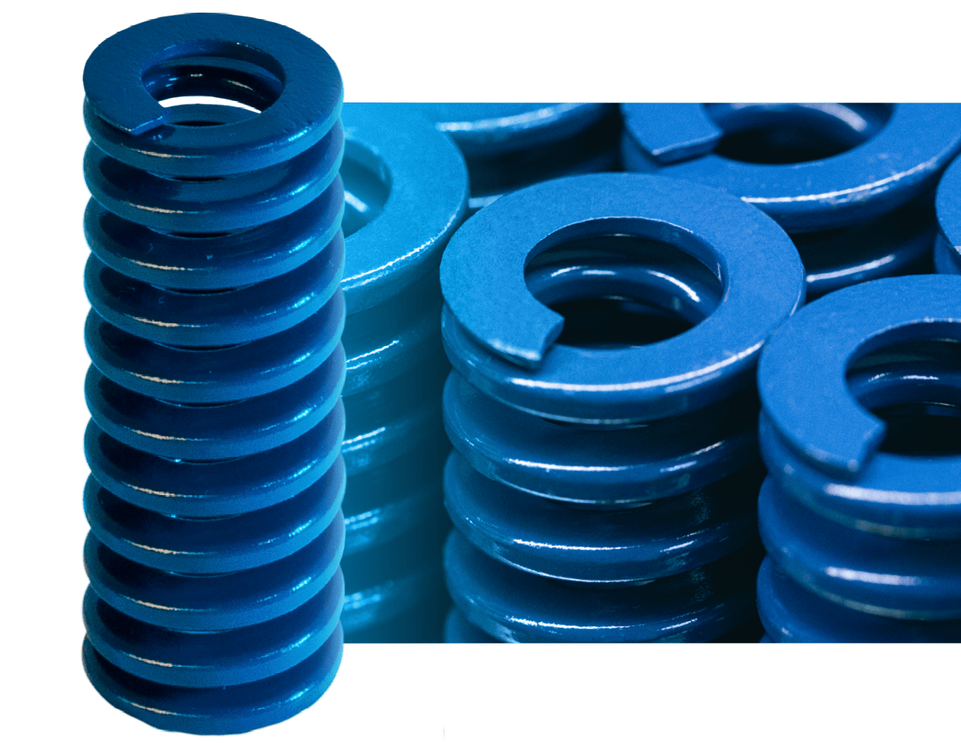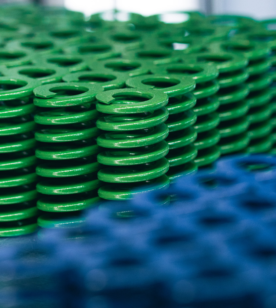 Unsere Systemdruckfedern sind farblich codiert gemäß ISO-Standard, temperaturbeständig bis 180 °C und dank Ventil-Federstahl ideal für Anwendungen mit hoher Schlag- und Schwingungsbelastung. Für besonders kompakte Einbausituationen kommen Polyurethan-Elastomer-Federn oder Gasdruckfederelemente zum Einsatz – mit enormer Kraftaufnahme auf kleinstem Raum.